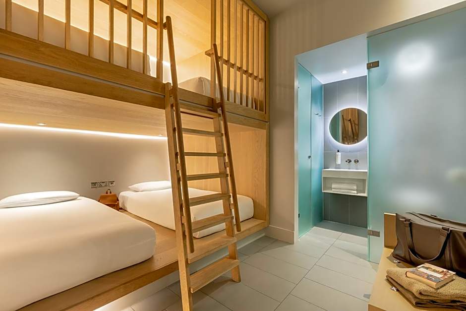 A broad lineup of rooms makes it easy to tailor the stay to any traveler, from solo adventurers to large groups. Cocoon One, Single offers a compact 75-square-foot option for solo trips, while the Cocoon Ten bumps up to 721 square feet with four Twin and two Queen beds for bigger groups. Other Cocoon configurations include Cocoon Two, Double (108 sqft) for up to 4 adults and 3 children with a single Double bed; Cocoon, 2 Double (151 sqft) with two Double beds; Cocoon Three, Double And Twin (129 sqft) with a Twin and a Double; and Cocoon Eight, 4 Double (205 sqft) accommodating up to 10 adults and 6 children.